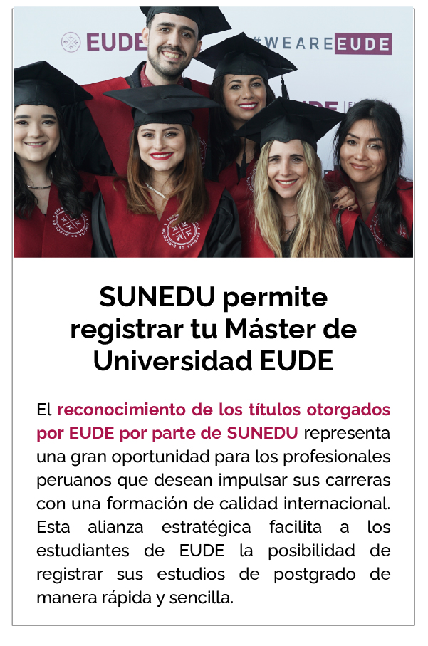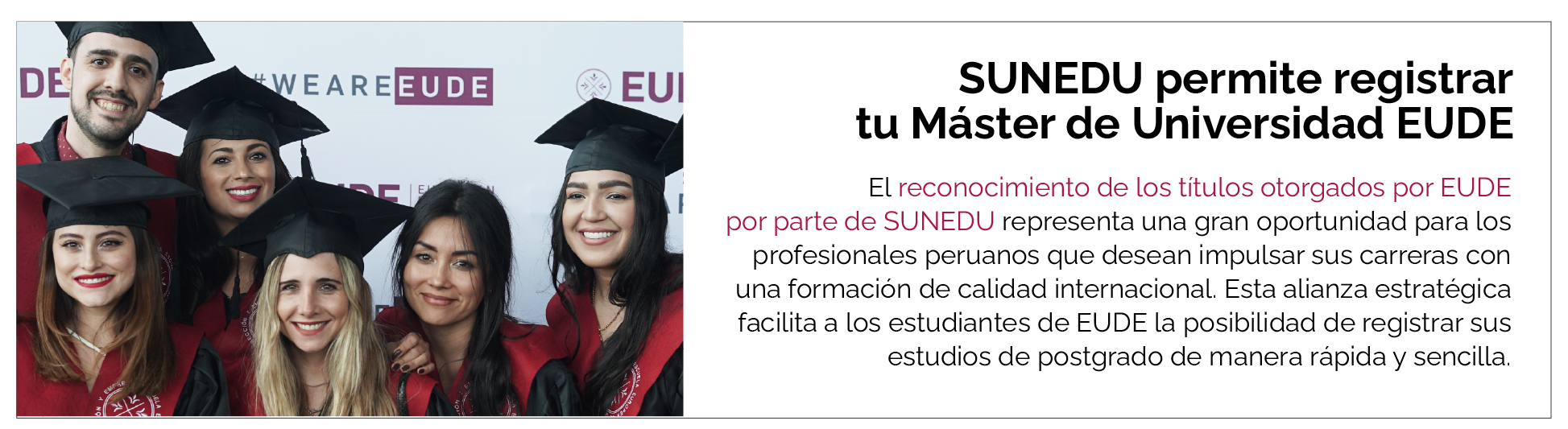 EUDE es considerada como una de las más destacadas en el mundo y las principales consultoras independientes a nivel internacional acreditan su calidad académica e institucional. Nuestra reconocida metodología de formación, innovadora, práctica y flexible atrae a profesionales, emprendedores, jóvenes, innovadores y líderes con visión global dispuestos a cambiar el mundo. EUDE es una universidad orientada a dar soluciones competitivas de formación con la máxima calidad académica. Queremos crear un entorno en donde el sector productivo y la educación aprovechen las sinergias para preparar a los futuros profesionales a afrontar la realidad empresarial.